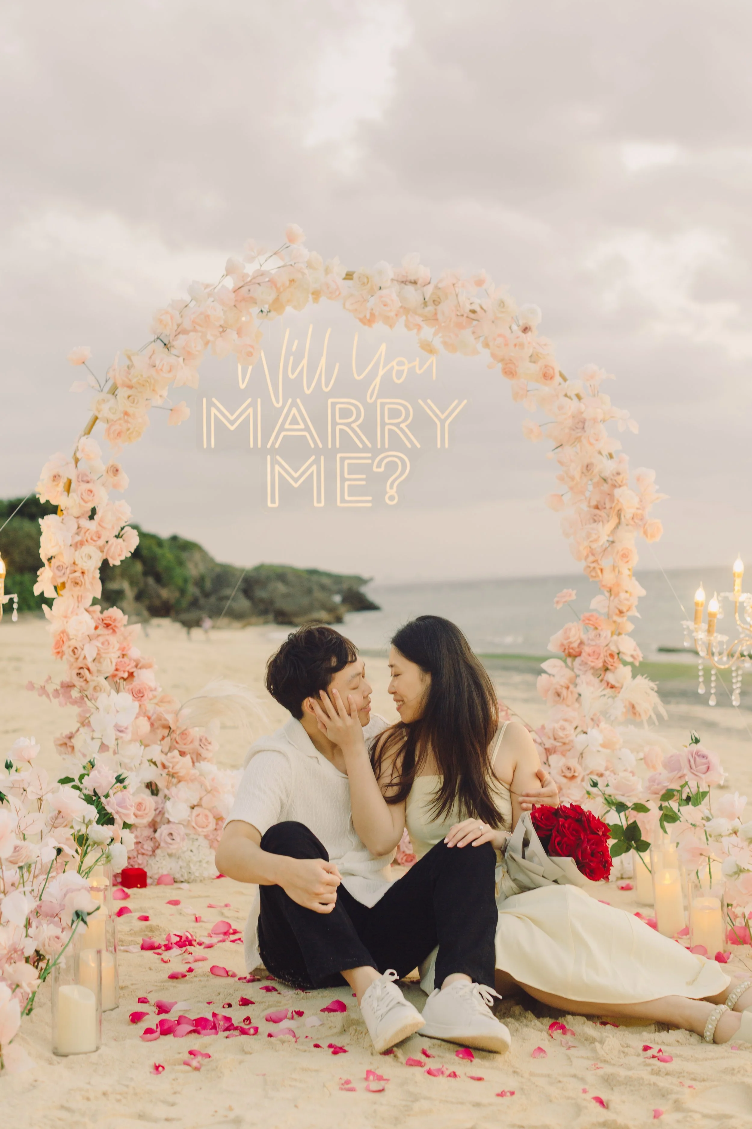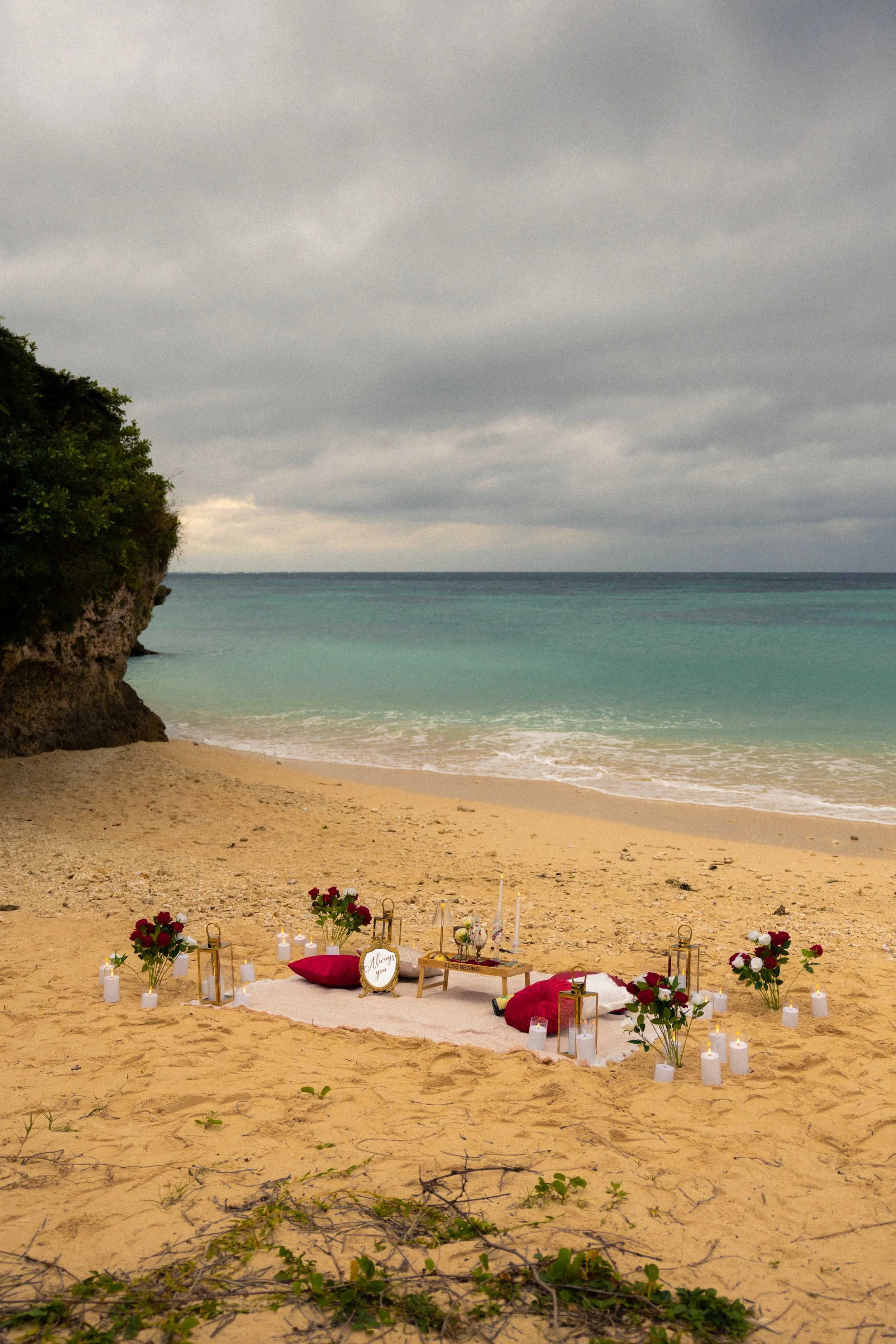 At Bliss Begins, we specialize in planning and styling romantic proposals in Okinawa. From chapel moments and private beach setups to yacht proposals and intimate indoor celebrations, our team designs unforgettable experiences tailored to your love story.